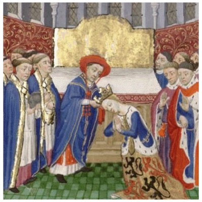 The coronation of Phillipa of Hainault, queen of Edward III of England.